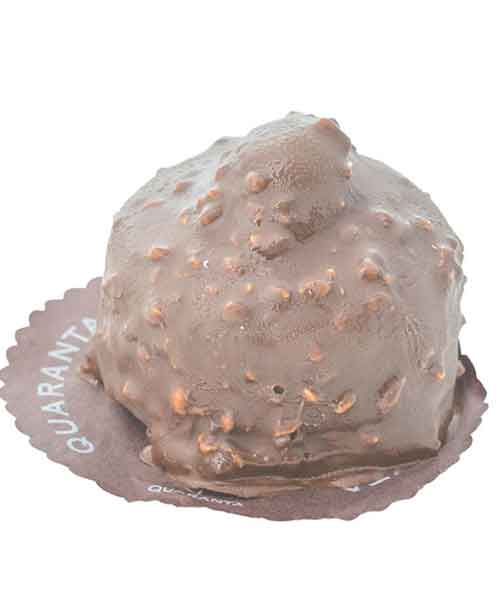 Pan di spagna al cioccolato, semifreddo al bacio, glassa di cioccolato al bacio.