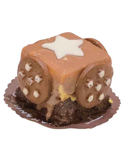 Pan di spagna al cioccolato, croccante di nutella, biscotto semifreddo alla nutella, glassa al latte.