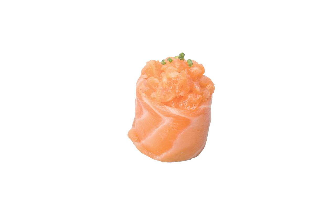 Tartare di salmone#, tobiko (s), salmone# all’esterno; (salmon# tartare, tobiko (s), salmon# on tè outside).